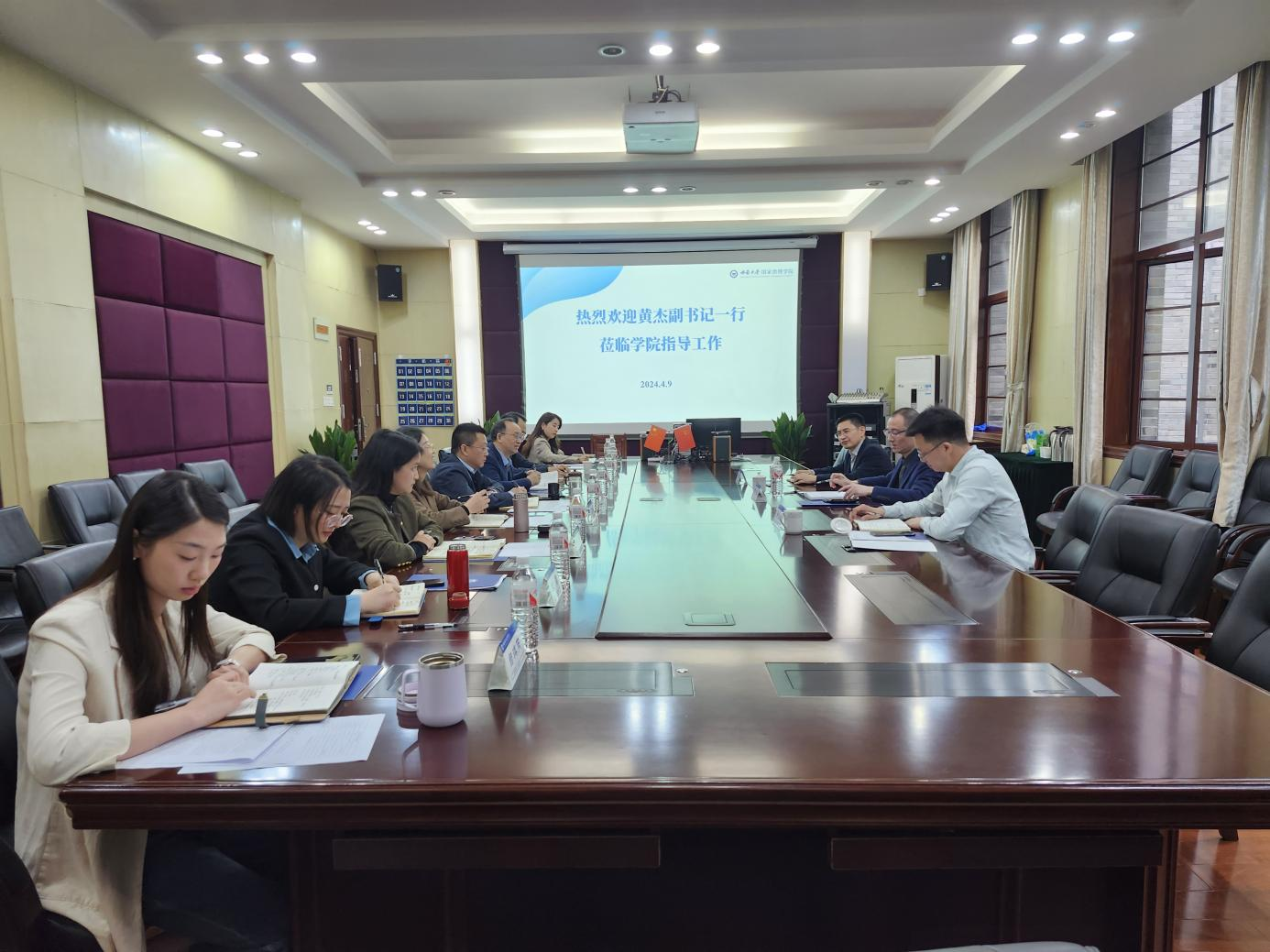 发布时间: 2024-04-10 17:21:54 已阅读:4月9日上午,学校党委副书记黄杰一行莅临学院调研指导学生工作,党委学生工作部部长、学生工作处处长、武装部部长许克松,招生就业处处长李栋宣陪同调研。学院党委书记刘勇,院长、党委副书记潘孝富,党委副书记、纪委书记陈丽华,党委副书记李长松及组织员、全体辅导员参加调研座谈会。