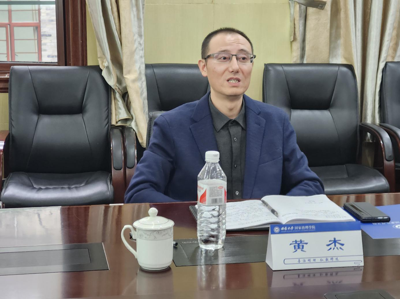黄杰对学院党政班子高度重视学生工作,坚持以学生为中心的工作理念,切实保障学生工作条件,充分发挥专业教师在学生思想政治工作中的协同育人作用表示充分肯定,对学院下一步工作提出三点要求:一是加强学科专业与人才培养深度融合,进一步凝练学生思想政治教育品牌。二是推动思想政治教育与人才培养深度融入,进一步助推学生高质量就业;三是推进辅导员队伍建设与人才培养深度融通,进一步推动学生工作高质量特色化发展。