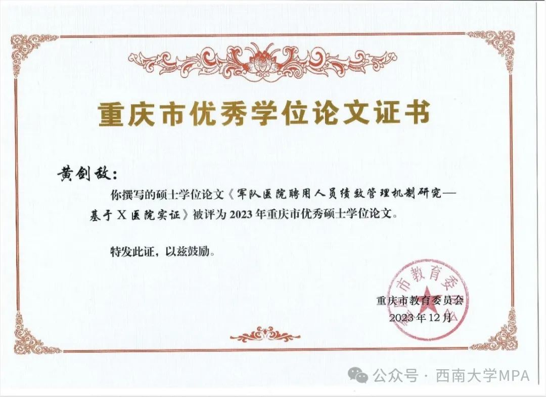 喜讯∣我校MPA论文入选2023年重庆市优秀学位论文