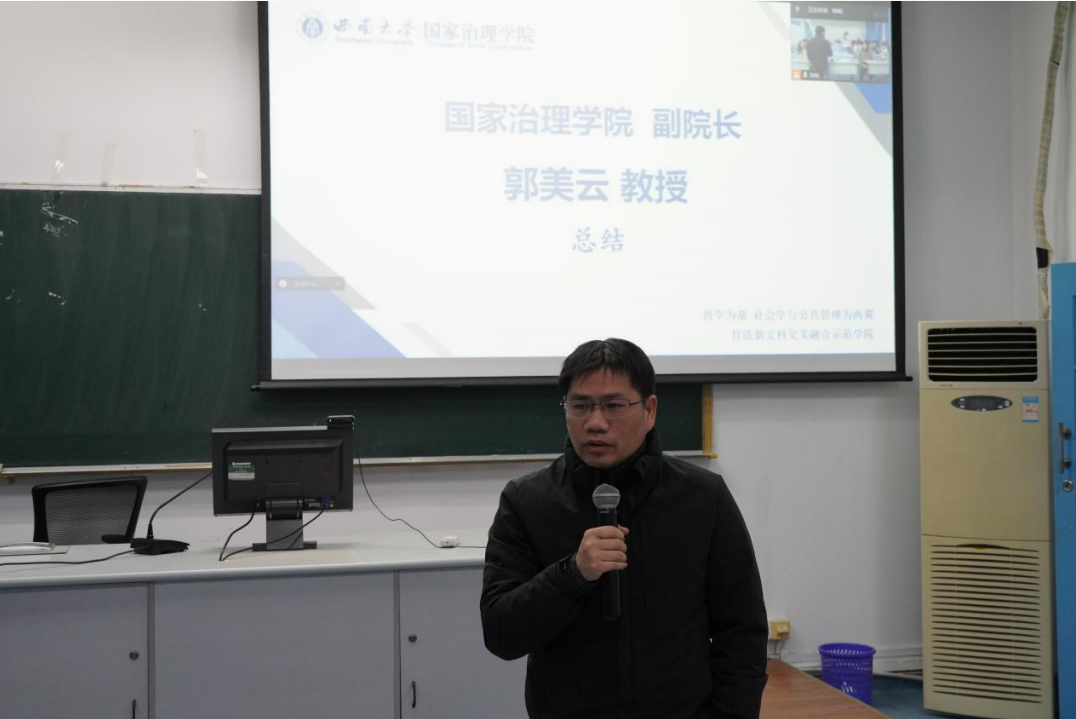 颁奖环节结束后,郭美云进行总结讲话。他充分肯定了此次案例大赛活动的意义,并提出了殷切期望,希望大赛能够进一步提升影响力,鼓励更多同学踊跃参与,并借此平台提升专业能力,迎接更大的挑战和机会。至此,第三届社会工作案例大赛圆满落幕。