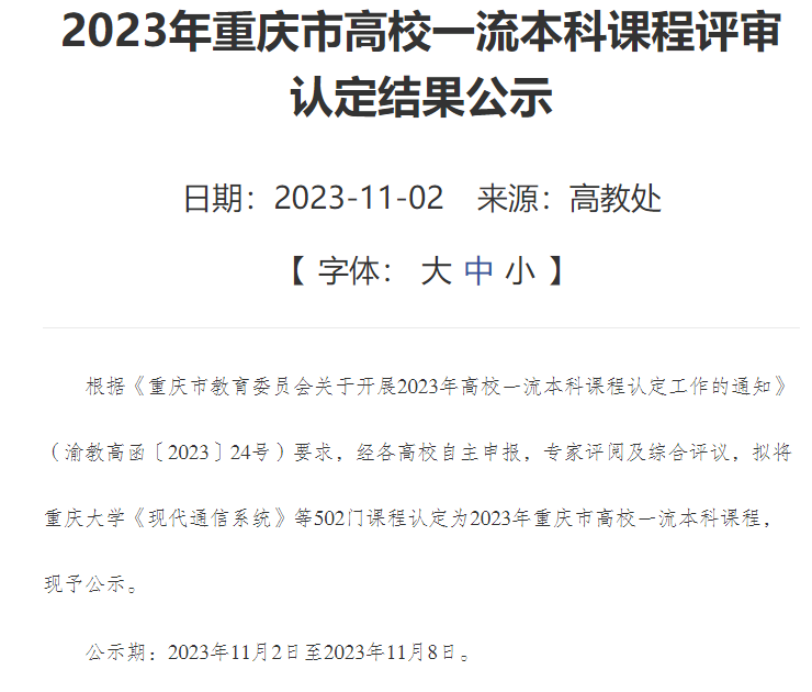 学院2门课程获重庆市高校一流本科课程