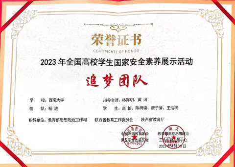 学子风采|学院学生在2023年全国高校学生国家安全素养展示活动中获“追梦团队”