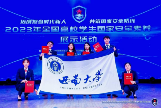 发布时间: 2023-04-23 09:13:41 已阅读:在第八个全民国家安全教育日到来之际,为深入贯彻总体国家安全观,推进开展国家安全宣传教育,有效增强大学生国家安全意识和素养,2023年4月12—13日全国高校学生国家安全素养展示活动在长安大学举行。我校在前期省级选拔赛中被推荐代表重庆市高校参加全国展示活动,学院2020级行政管理专业赵怡、2020级公共关系学专业王浩楠、2021级文化产业管理专业马睿雅代表学校参与展示。
