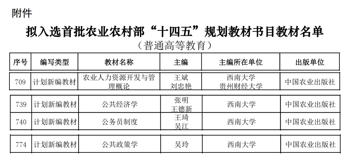 学院4部教材入选首批农业农村部“十四五”规划教材