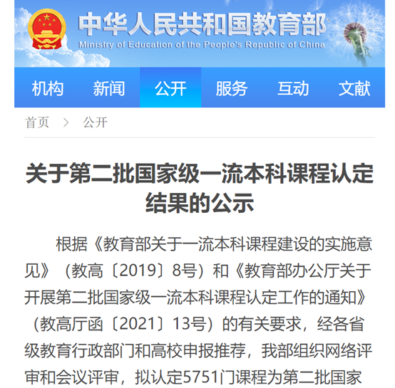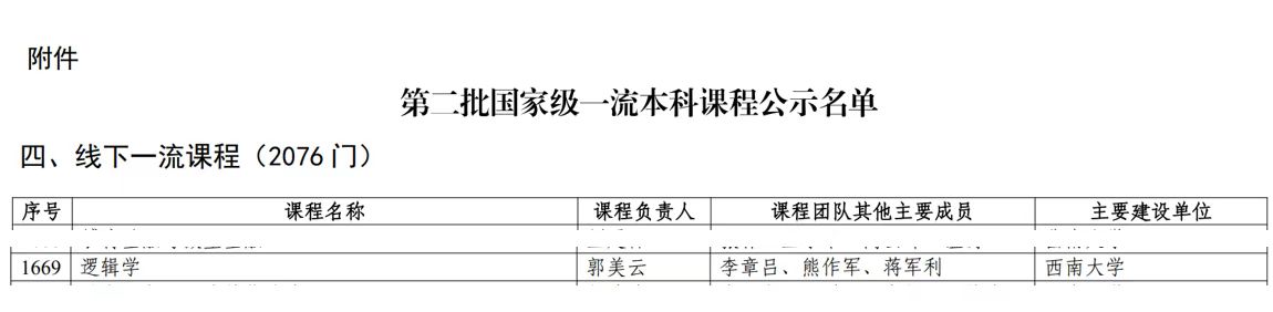 2023年4月11日,教育部高等教育司发布《关于第二批国家级一流本科课程认定结果的公示》,我院郭美云教授负责的《逻辑学》课程被认定为第二批国家级一流本科课程(公示)。