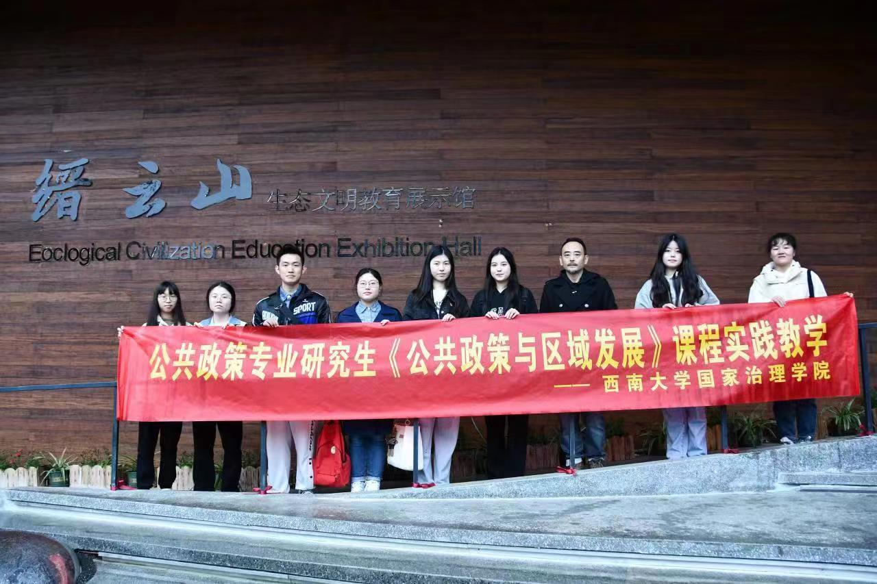 发布时间: 2023-03-27 16:46:35 已阅读:3月23日,国家治理学院《公共政策与区域发展》专业课程组织开展了一场课外实践调查。课程负责人王斌教授带领2022级公共政策专业的8名研究生前往新北温泉公园、澄江镇柏林村、黛湖以及缙云山生态文明教育展示馆调研。