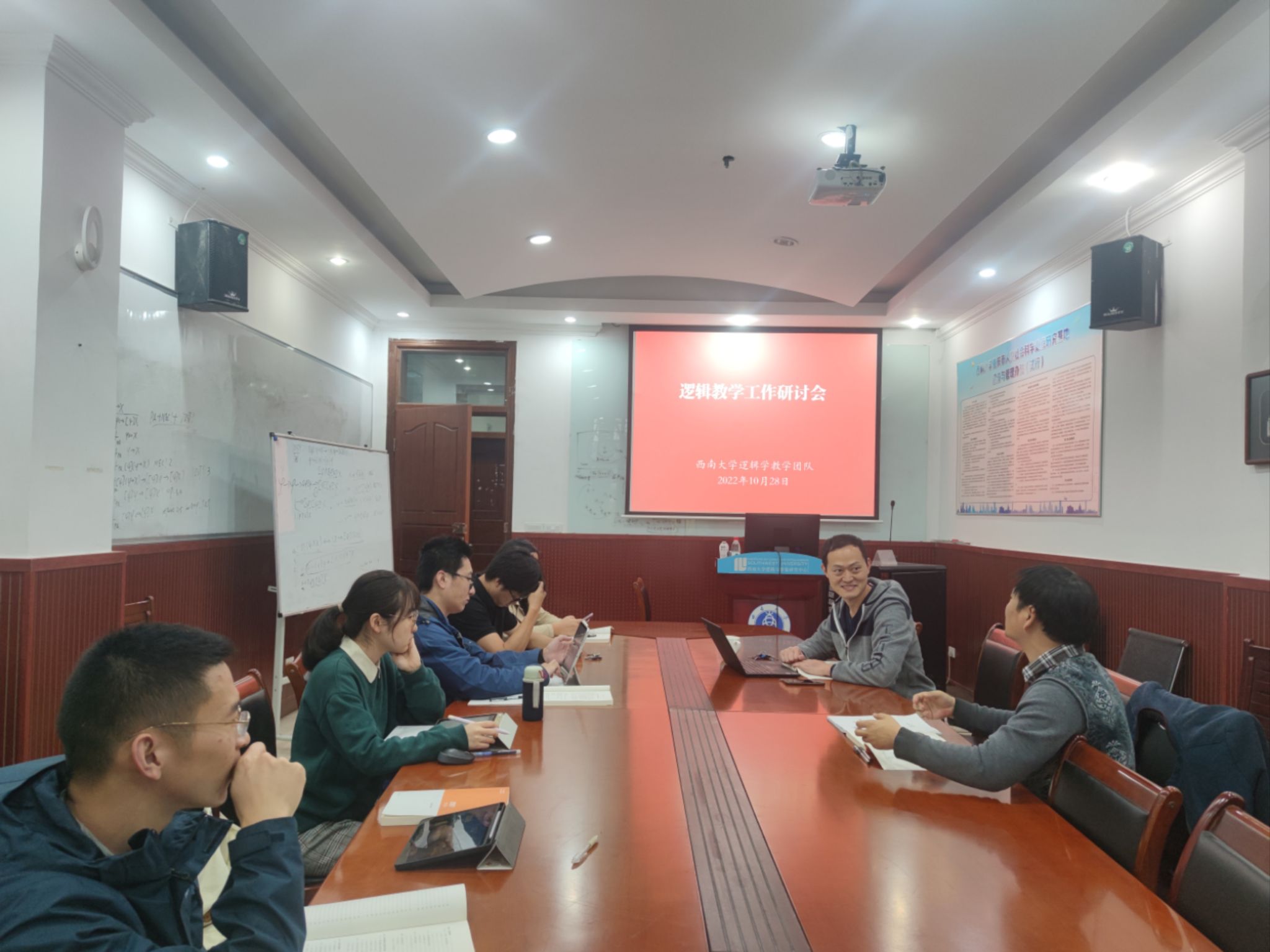 发布时间: 2022-11-07 11:34:58 已阅读:2022年10月28日,为配合推进国家级一流本科专业(哲学)建设工作,英国上市公司365逻辑学教学团队在3203逻辑与智能研究中心会议室召开了“逻辑教学工作研讨会”。教学团队成员郭美云教授、李章吕教授、熊作军副教授、蒋军利博士、孙洋博士,以及学生代表郭希、郑怡、肖方等参会。会议由逻辑学教研室主任李章吕主持,就逻辑教学与研究、重庆市教学创新大赛准备工作和“马工程”教材《逻辑学》修订工作等事宜进行了研究和部署。