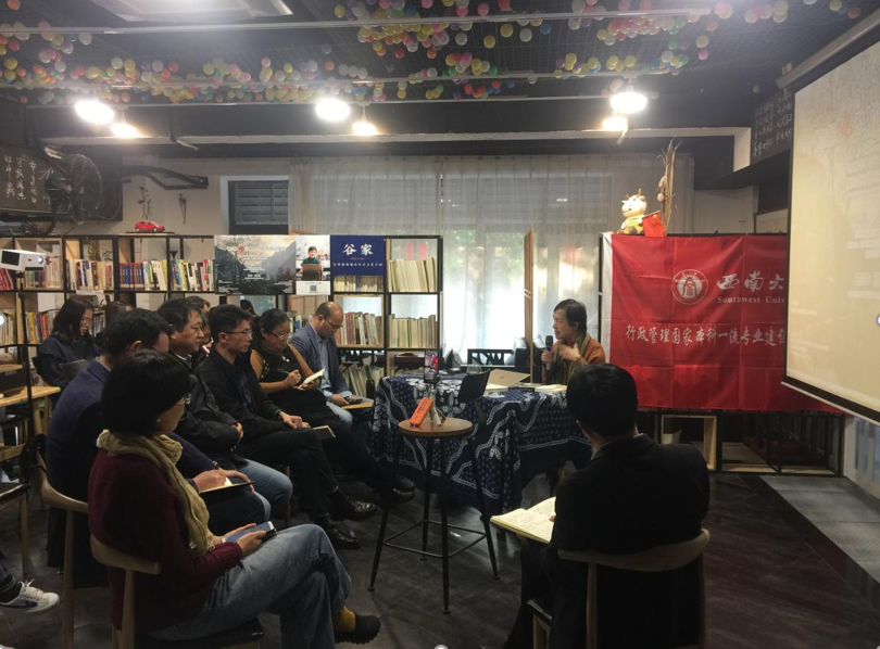 在交流互动环节,张明教授就乡村治理人才的培养等问题与廖晓义进行探讨。兰剑副教授从乡村治理的实际问题出发,指出新形势下乡村治理的新问题以及人才培养的重要性。袁明宝博士则从如何实现基层组织动员群众等问题展开讨论。张爱林会长也表达了对于未来北碚乡村建设以及相关人才培养的美好愿景。