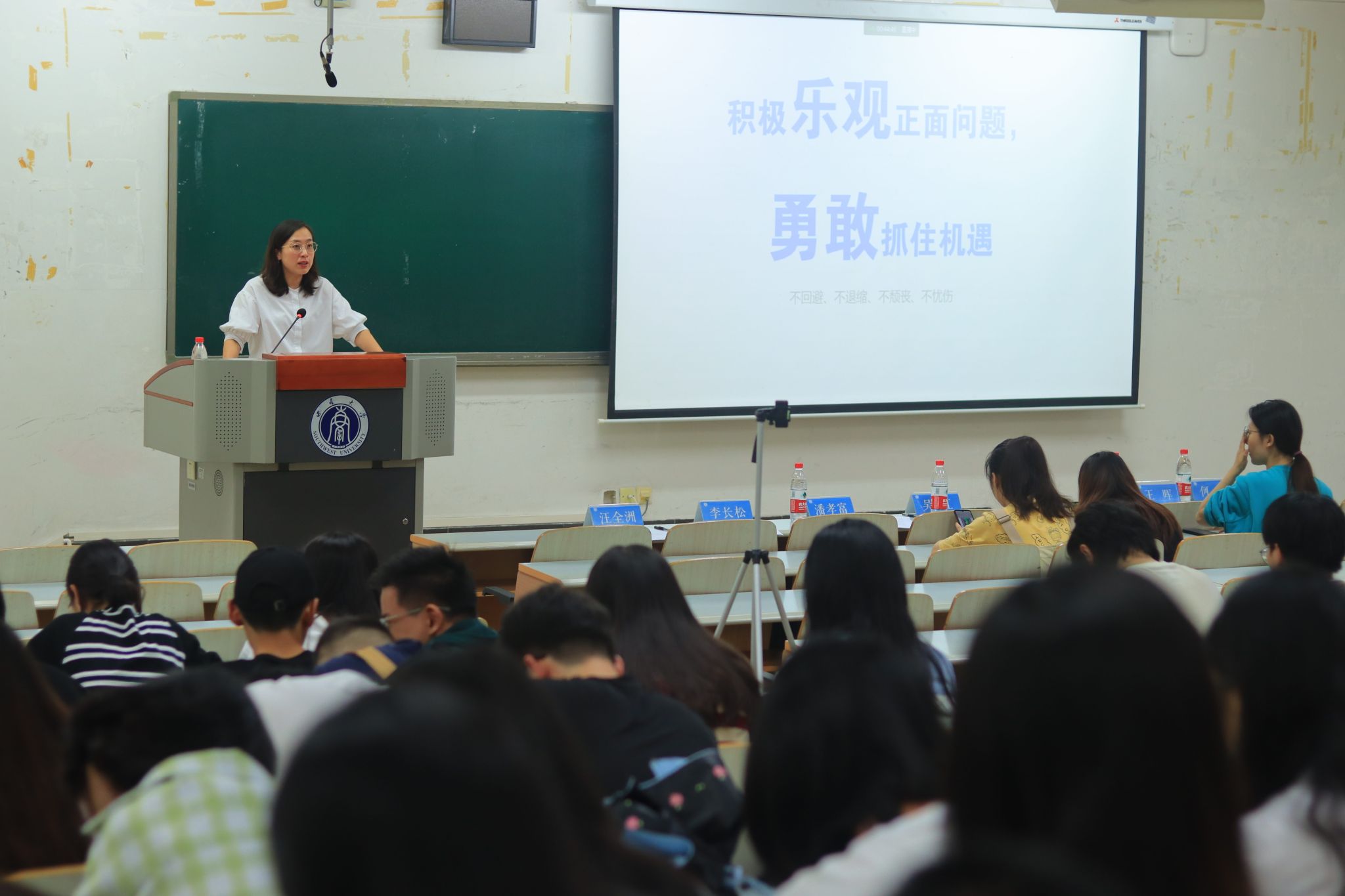 最后,全体毕业生共上学校就业公开大课《就业,你最缺什么?》。主讲人吴沙为教育部学生服务与素质发展中心特聘就业指导专业,课程内容丰富,引起了在座毕业生的强烈共鸣。