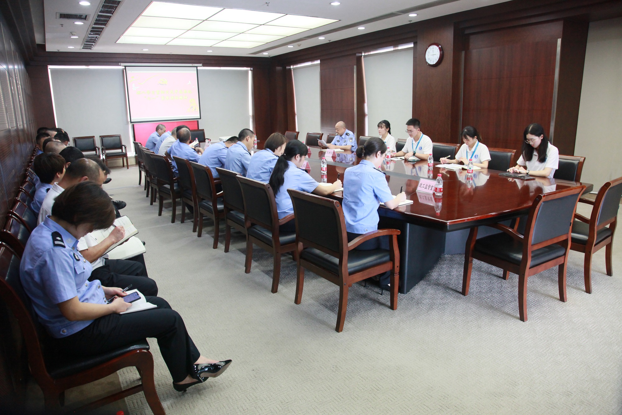 在重庆市公安局法制总队,宣讲团同公安干警就“新时代法治公安建设”开展学习交流,新时代人民公安应全面学习贯彻习近平总书记“七一”重要讲话精神,认真贯彻落实新时代建警治警总方略,忠实履行好党和人民赋予的新时代使命任务。