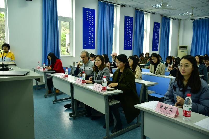 随后,Kohler老师上台致辞,他用幽默风趣的语言表达了对我国迅速有效控制疫情的肯定与敬佩;向同学们介绍了自己的爱好;希望同学们在众人面前交流,要注意句式以及语法,不断练习,争取提高口语表达水平。Kohler老师非常热爱中国传统文化,还谈到希望将中国哲学中“道”的精神,融入师生间的交流和学习,使师生双方教学相长,更好地促进文化的交流融合。