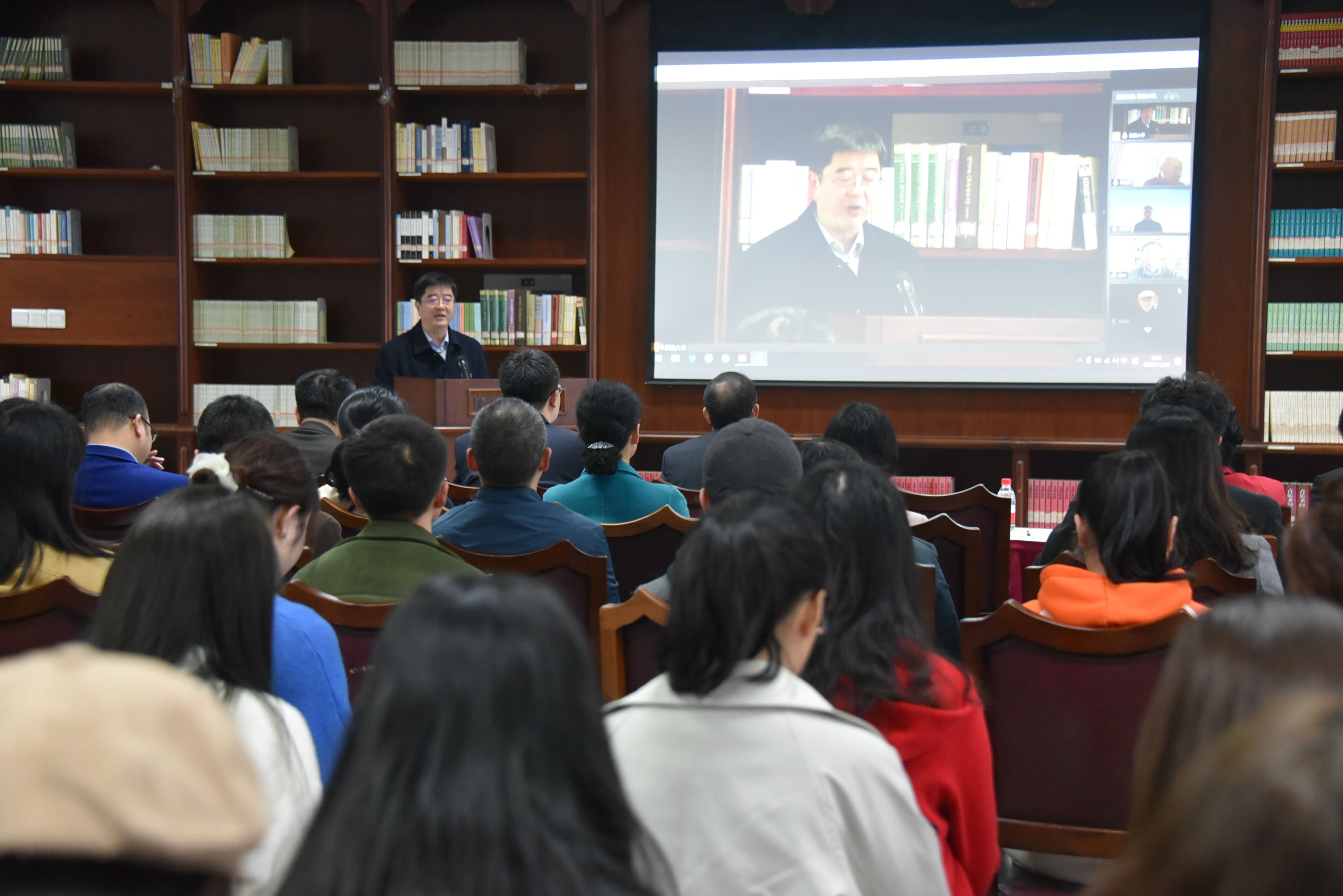 线下师生围绕讲座主题积极发言并与专家深入探讨。潘孝富院长对本此讲座做了总结,并鼓励师生积极探索景天魁教授所提出的理论视角,为发展中国特色社会学助力。