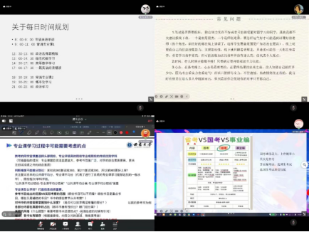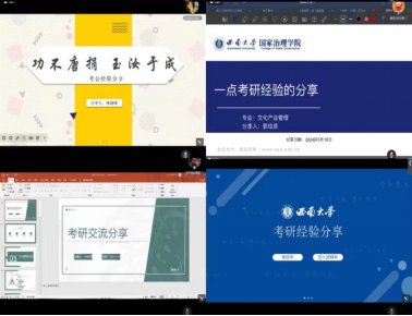 在考研经验分享会中,社会工作专业孙天秀,行政管理专业何涛,文化产业管理专业郭炫辰,哲学专业张疆华分别从院校选择、备考策略、时间规划、重难点专业课程的准备等方面分享了自己考取中国人民大学、浙江大学、西南财经大学以及英国上市公司365的经验。在考公经验分享会中,嘉宾宋明慧、林海顺、闫骋浩分别从岗位选择、笔试面试准备要点、备考心态等方面有针对性的分享了个人在国考、省考、事业单位、选调生等公职类考试中的成功经验。