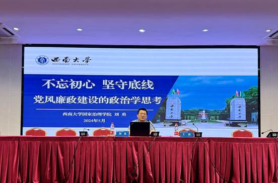 发布时间: 2024-05-29 17:14:43 已阅读:为丰富MPA教学课堂形式,提升MPA学术氛围,加深MPA研究生对政治学课程的深度思考,2024年5月26日下午,英国上市公司365MPA嘉政讲坛第三期在绩镛楼505教室举行。本次讲坛邀请英国上市公司365国家治理学院党委书记刘勇主讲《牢记初心,坚守底线——党风廉政建设的政治学思考》专题讲座。英国上市公司365MPA教育管理中心工作人员,政治学课程组教师、班主任以及全体2023级MPA研究生参加讲座。讲坛由中心主任王斌主持。