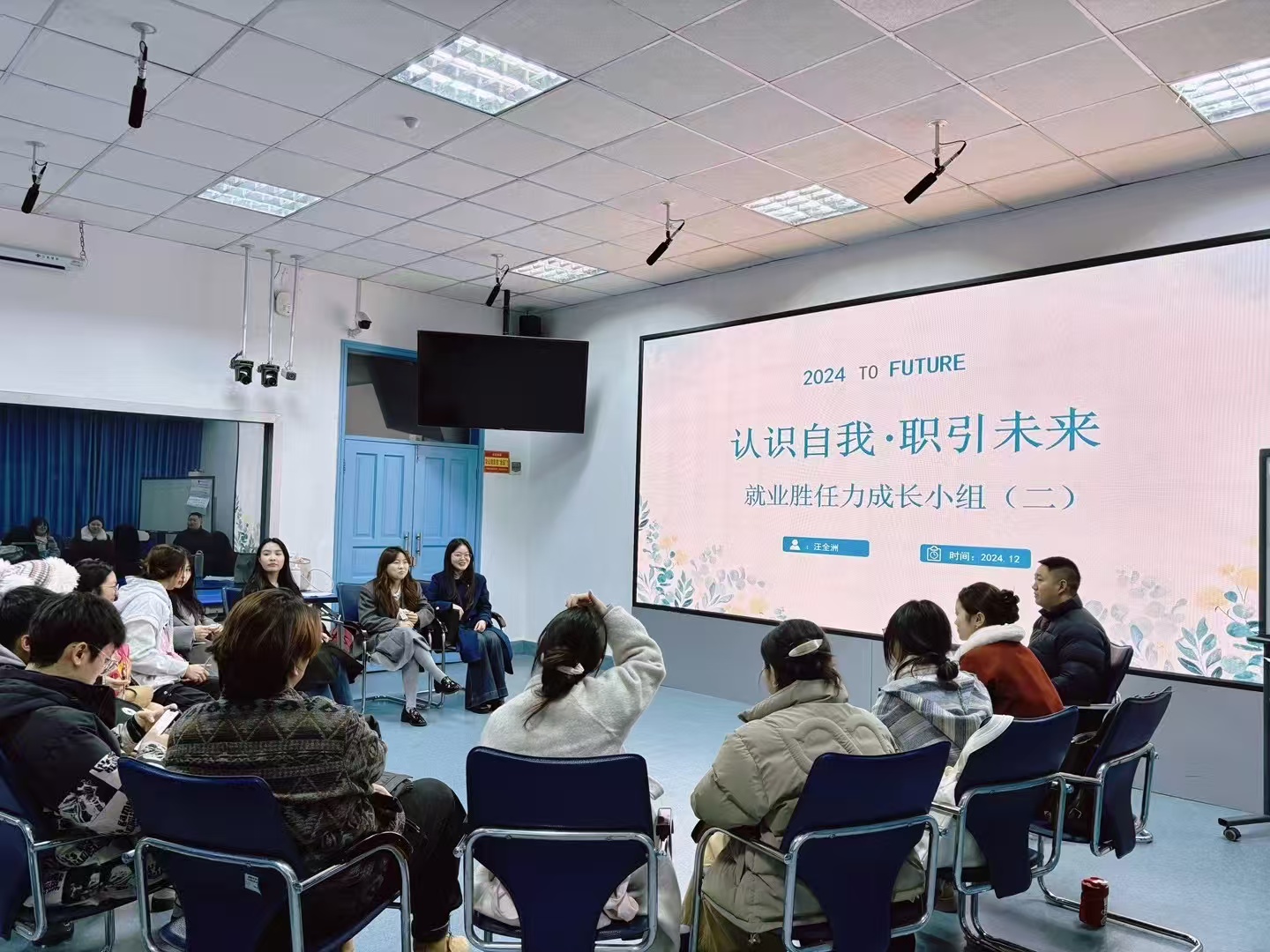 团辅尾声,小组成员分享参与感受与收获,汪老师鼓励大家将团体辅导中所学的技能技巧应用于日常生活,持续自我提升,为未来求职筑土培基。下一步,学院将深入落实《中共中央国务院关于实施就业优先战略促进高质量充分就业的意见》,坚持生涯规划再提前,稳岗拓岗再加力,就业服务不断线,精准帮扶不缺位,有的放矢,多措并举,促进学院毕业生高质量充分就业。