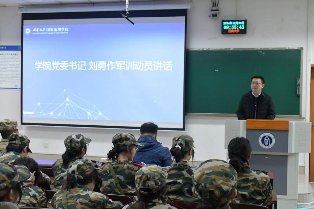 傲雪凌霜,冬日可爱。12月30日上午,学院2024级本科生军训动员大会在28教301会议厅举行。学院党委书记刘勇、党委副书记李长松、一团一营二连曹海川教官、余文龙教官、2024级辅导员肖颜以及全体参训学生参加了本次动员大会。大会由肖颜主持。