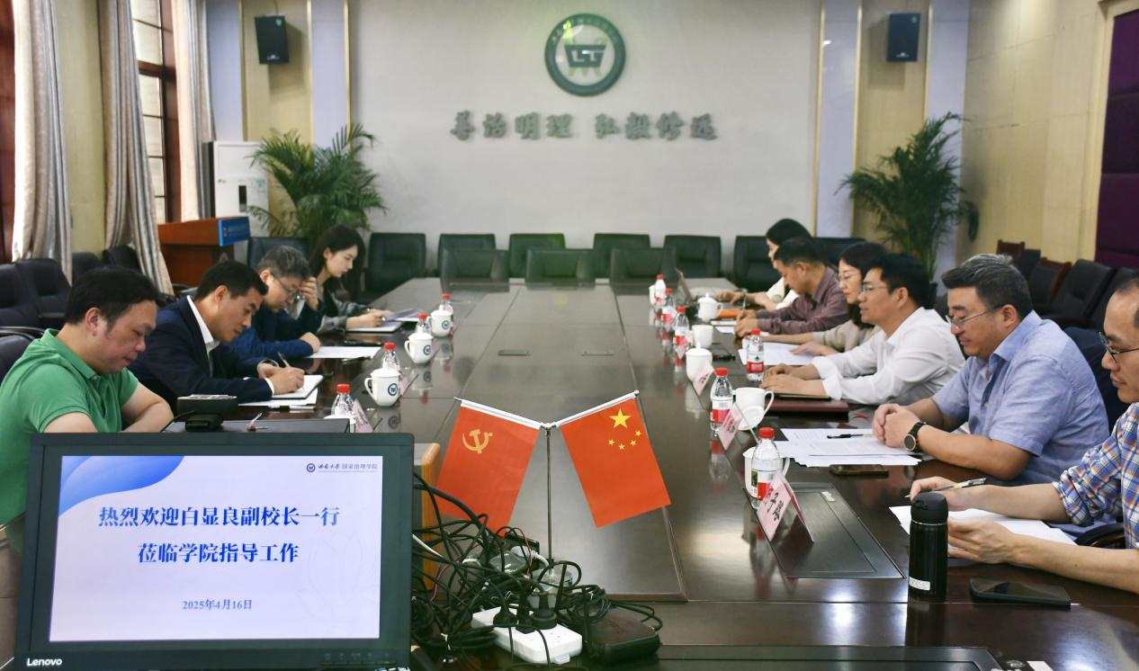 发布时间: 2025-04-21 17:52:42 已阅读:4月16日,学校副校长白显良一行赴院调研指导科研、社会服务以及宗教研究所建设工作。社会科学处副处长王作军、副处长吴淑爱陪同调研。学院党委书记刘勇、副院长(主持工作)郭美云、党委副书记陈丽华、宗教研究所所长曾维加以及相关老师参加调研座谈。会议由郭美云主持。