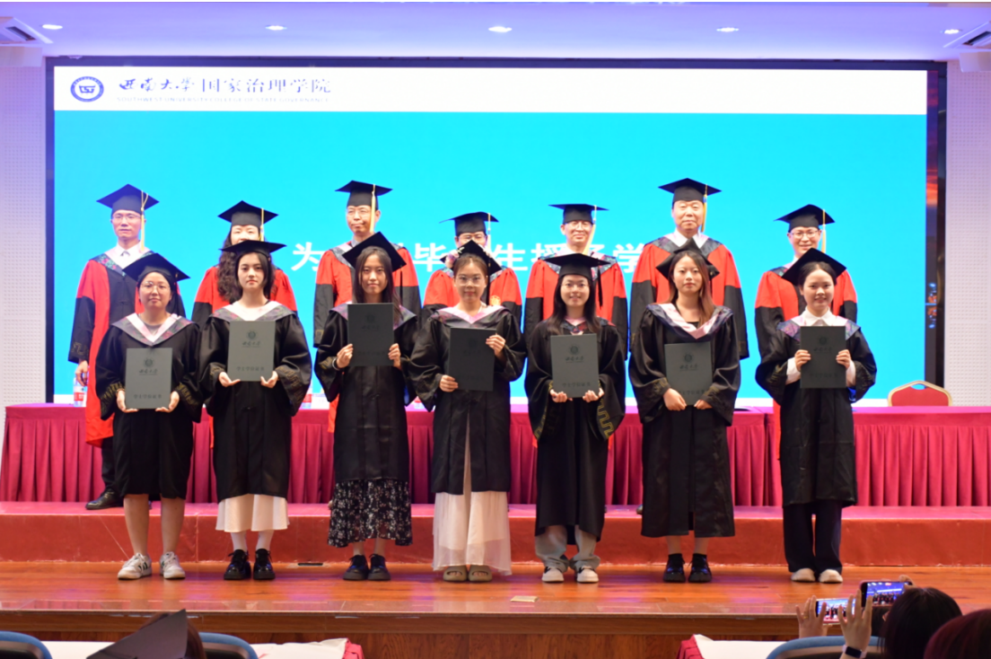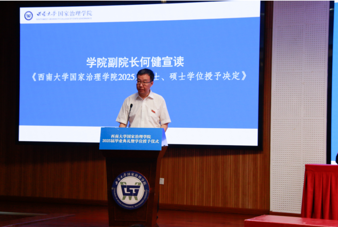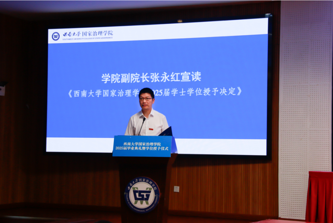 授位仪式由陈丽华主持,副院长张永红、何健分别宣读2025届博士、硕士和学士学位授予决定。学院学术委员会委员为取得博士和硕士学位毕业生颁发学位证书,为取得学士学位的本科毕业生拨穗授位并合影留念。