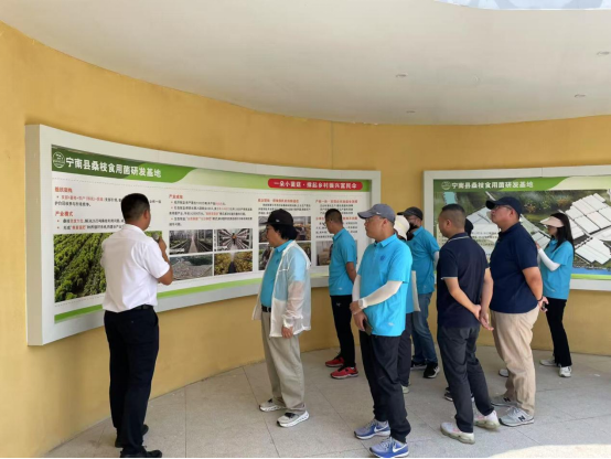 宁南县桑枝食用菌研发基地负责人向调研组介绍基地情况(刘小琳 摄)
