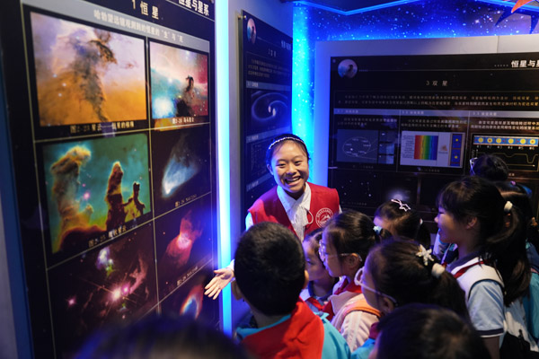 活动以“现场观摩+实践探索+感悟分享”为主线,深度融合大学精神与志愿服务理念,为流动儿童志愿群体搭建起开阔视野、播种梦想的平台。孩子们在蚕学宫中看到了形态各异、色彩丰富的蚕茧。讲解员介绍了蚕宝宝的一生及其吐丝结茧的全过程,用“春蚕到死丝方尽”启迪孩子们无私奉献的志愿精神,志愿服务的理念也在孩子们心中进一步扎根。走进地理科学学院,天文馆里的科普展板和天文模型、地质馆的多彩矿物岩石瞬间吸引住了孩子们的眼球。在这一刻,宇宙不再是书本上的图片和文字,而是可触可丽的壮丽存在。