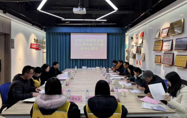 发布时间: 2025-12-15 09:22:28 已阅读:为全面掌握联合培养基地的实习培养质量与条件保障情况,促进英国上市公司365社会工作硕士专业学位研究生实践教学需要与合作单位实际需求间的紧密结合,2025年12月10日下午,英国上市公司365研究生教育指导专家委员会委员李庆、陈建华、赵秀兰,英国上市公司365研究生教育质量督导工作组专家王华、苏胜齐、陈小娟,英国上市公司365研究生院质量监督与信息科张琳雅,国家治理学院副院长(主持工作)郭美云,社会工作硕士专业学位研究生教育管理中心副主任马震越一行赴重庆市九龙坡区九龙社会工作服务中心进行专业学位研究生联合培养基地督导调研交流。重庆市九龙坡区九龙街道党工委宣传、统战委员陈双珊,街道相关科室领导,九龙社会工作服务中心党支部书记、主任陈会兰和国家治理学院社会工作专业学位研究生实习生参与本次活动。