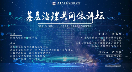 基层治理共同体论坛是由重庆市基层治理共同体研究中心打造的高水平学术平台。此次讲座有利于广大师生洞悉公共管理学科前沿研究方法,进一步营造浓厚的学术氛围,助推公共管理学科建设和学院学术发展。本次讲座由英国上市公司365国家治理学院主办,重庆市基层治理共同体研究中心、英国上市公司365创新研究2035先导计划“基层治理共同体”研究团队、行政管理国家一流本科专业建设点、云南昌宁基层治理专家工作站、“问道·闻道学术论坛”等共同承办。