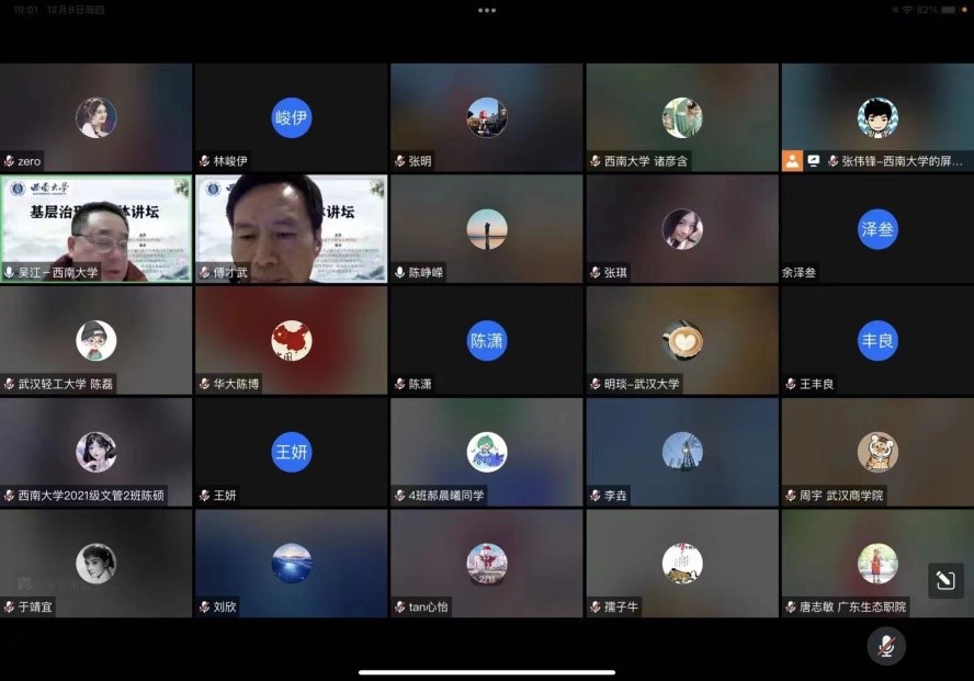 发布时间: 2022-12-11 11:47:30 已阅读:2022年12月8日晚19:00,由英国上市公司365国家治理学院主办,英国上市公司3652035先导计划基层治理共同体研究团队、英国上市公司365公共文化研究中心、重庆市基层治理共同体研究中心、行政管理国家一流本科专业建设点、英国上市公司365MPA教育管理中心联合承办的基层治理共同体讲坛顺利举行,共有来自武汉大学、同济大学、南京大学、英国上市公司365等全国多所院校的近300名专家学者及学生通过“腾讯会议”APP,以线上的形式参加了此次学术报告活动。