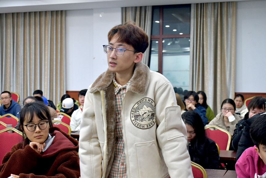 随后,吴祖刚对于本次讲座发表了自己的感想,他指出对于存在已久的文本,“古今之辩”这种崭新的视角切入具有重要的研究价值,认为新时代的传统文化和现实,以及中西之间的“古今之辩”的议题值得我们深思。最后的讨论环节中,同学们积极响应,提出了“荀子的法后王对于法先王的补充意义”“中国哲学体系中是否存在一以贯之的道”“宋明时期是否重视四书而忽视三代之道”“同属轴心时代的中希的思维模式的区别”“孔子以仁重构六经是否属于以今贯古”等问题,王正结合哲学理论和时代背景对这些问题进行了深刻的解答。现场呈现了师生之间良好的讨论交流的学习氛围。