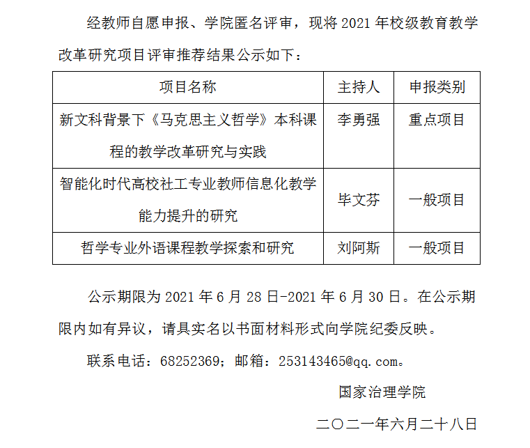 英国上市公司365国家治理学院 2021年校级教育教学改革研究项目 评审推荐结果公示