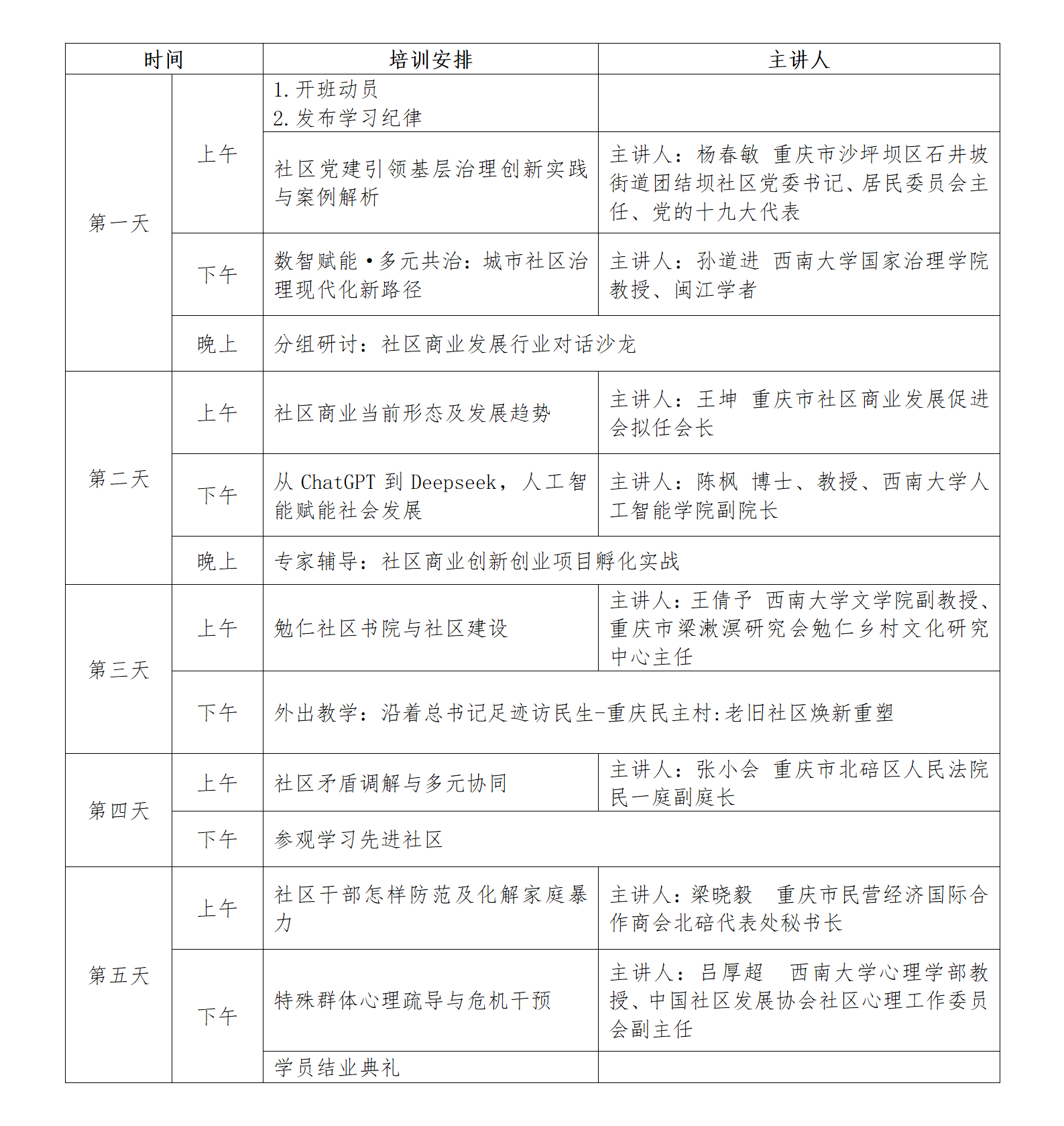 为全面贯彻习近平总书记关于基层治理的重要论述,深入贯彻2024年中共中央办公厅、国务院办公厅《关于加强社区工作者队伍建设的意见》中“强化社区工作者能力建设、支持高校与社会力量参与培训”的要求,落实成渝地区双城经济圈《川渝社会工作合作框架协议(2024年-2027年)》中关于共同探索超大城市现代化治理新路子、推动区域社会工作一体化高质量发展,破解当前部分社区治理力量不足、社区干部能力短板等问题,重庆市社区商业发展促进会、重庆民营经济国际合作商会、联合英国上市公司365,拟共同开展社区干部专项培训,旨在通过系统赋能填补干部能力短板,有效协助解决创业就业难题,助力社区治理工作高质量发展。现将有关事项通知如下: