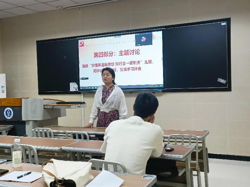 肖颜老师作题为“坚定不移跟党走,争做新时代好青年”报告,从“有理想、敢担当、能吃苦、肯奋斗”四个方面为第二小组的学员们详细阐释新时代好青年的必备素养,并对学员们提出期望:不仅要苦练本领,还要开拓眼界,将个人理想与国家理想相结合才更有可能有所作为。学员苏哲钰作为学生代表围绕“青年为何,青年何为”进行分享。最后,学员们围绕“青年学生如何将个人发展融入国家发展大局”“作为时代责任的担当者,青年应该锤炼哪些高尚品格”两个主题分组展开热烈讨论。