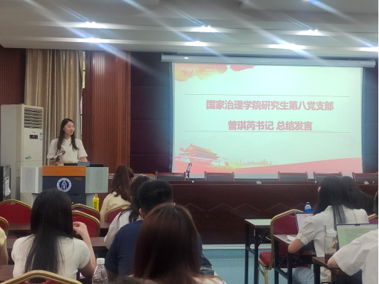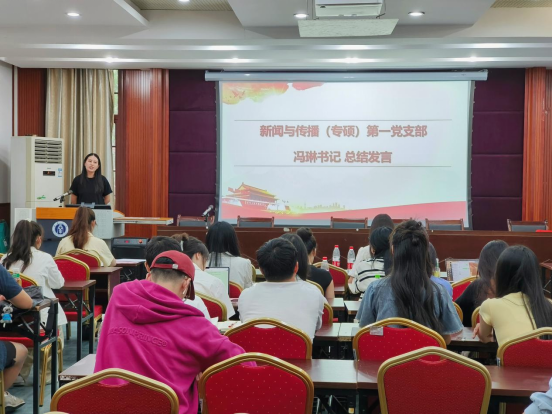 最后,新闻与传播(专硕)第一党支部书记冯琳表示在此次联合主题党日活动中受益匪浅,希望青年党员们将个人命运与祖国的命运交织在一起,投身于祖国振兴事业中。研究生第八党支部书记曾琪芮向党员同志提出三点期望:一是强化党纪学习,锤炼党性修养;二是立足专业特色,投身社会实践;三是增强创新能力,发挥模范作用。最后鼓励青年党员同志敢于拼搏,勇于实践,努力成为立大志、明大德、成大才、担大任的新时代青年。
