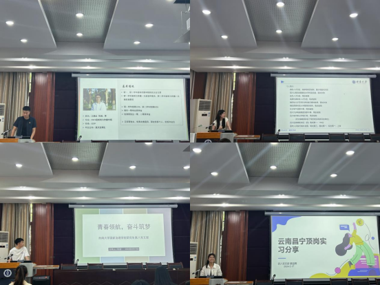 为进一步促进支部党员间联学共建、互学互促,强化党员同志立足专业发挥青春作用,本次党日活动举办成长论坛。研究生第八党支部陈键同志以《青春领航,奋斗筑梦》做主题分享,从备考计划、心态调整、课程复习等方面向大家分享考公上岸的学习经验与心得。研究生第八党支部蔡益辉以《助力乡村振兴,贡献青春力量》做主题分享,结合云南昌宁顶岗服务实习经历与体会,生动讲述了在云南昌宁巩固拓展脱贫攻坚成果、努力推进乡村振兴的实践故事。新闻与传播(专硕)第一党支部李远婕同志以毕业备考经历为切入点,分享面对枯燥的复习时光和屡次面试经历中调整情绪的方法。新闻与传播(专硕)第一党支部江骁达同志以《关关难过关关过、前路漫漫亦灿灿》做主题分享,从发展目标、学生工作、职业规划和考公经验四部曲分享研究生学习生活经历。党员同志们认真聆听、积极交流互动,现场一片浓厚和谐的学习氛围。