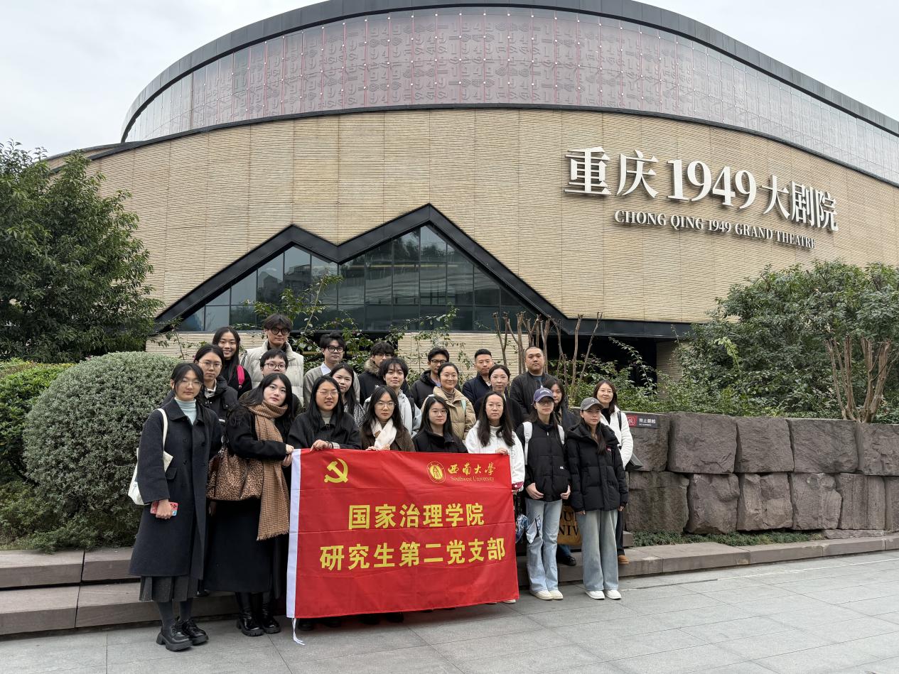 为传承红色基因,筑牢信仰之基,12月13日,国家治理学院研究生第二党支部组织支部成员赴重庆1949大剧院,开展“沉浸式感悟红岩精神”主题党日活动,通过观看大型红色舞台剧《重庆・1949》,在历史与艺术的交融中接受深刻的党性教育和精神洗礼。