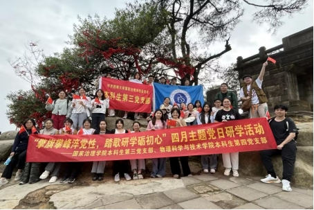 发布时间: 2025-04-29 10:16:42 已阅读:为推动党史学习教育常态化,积极践行健康中国战略,加强党员体魄的锤炼,4月25日下午,学院本科生第三党支部与物理科学与技术学院本科生第四党支部携手共赴缙云山国家自然保护区,联合举办了以“擎旗攀峰淬党性,踏歌研学砺初心”为主题的党日研学活动。本科生第三党支部书记杨钦清、物理科学与技术学院本科生第四党支部书记黄文静,支部全体党员及部分入党积极分子共40余人参加活动。