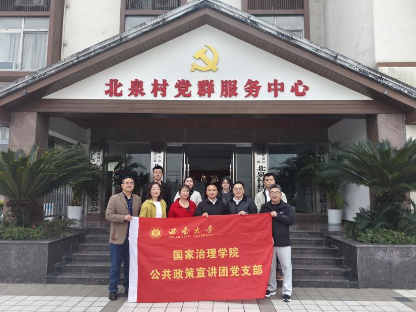 发布时间: 2025-11-25 17:45:32 已阅读:11月13日,学院公共政策宣讲团党支部和北碚区澄江镇北泉村党委在北泉村党群服务中心开展党建联建活动。北碚区澄江镇党委委员常正波、北泉村党委书记龙天真、公宣团党支部书记朱琳、副书记杨毅,以及党员代表、村民代表等参会。双方以党建联建、资源共享、发展共谋为抓手,在乡村治理、农文旅产业发展、实践育人等多领域探索共建路径。
