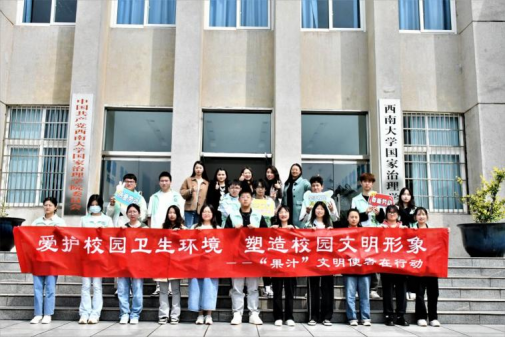 图1 2022级公管6班“果汁”文明使者合影