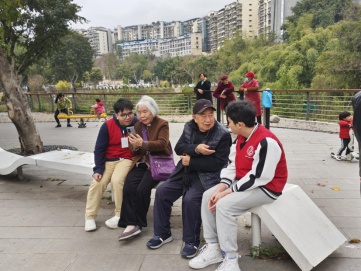 图 3 公宣团的志愿者和爷爷奶奶们热情交流