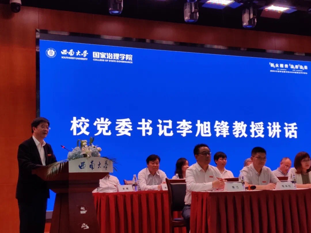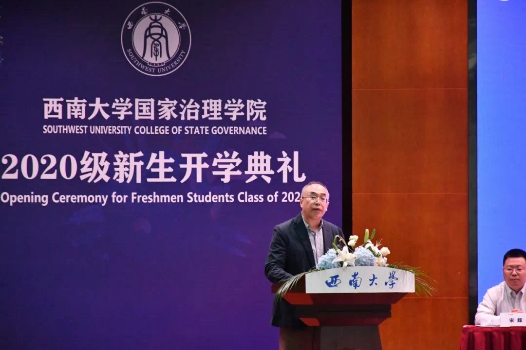 校党委书记李旭锋教授在开学典礼上做重要讲话。李书记向新同学表达了热烈的欢迎,并详细阐述了国家治理学院成立的重大意义与使命所在,向全体新生提出了三点期望:第一,心系家国,厚植善治情怀。希望同学们厚植家国情怀,胸怀国家治理的远大理想,将个人发展植根于伟大的时代,牢记“特立西南,学行天下”的大学精神,用责任心和使命感去体会学习的意义、知识的力量和奉献的价值,为推进国家治理水平现代化砥砺前行。第二,勤学博采,锤炼善治本领。希望同学们能保持求知若渴的学习态度,沉心静气,埋头苦学,熟练掌握专业知识,练就专业技能;广泛涉猎,博采众长,建构丰富的“知识库”,练就发现问题、探索问题、解决问题的能力。第三,笃行致远,追逐善治理想。希望同学们结合时代的新特点和新要求,聚焦全球治理、国家治理、社会治理、城市治理和环境治理等现实问题,直面治理实践中的新场景、新领域、新现象,坚持理论联系实际,广泛关注社会现实,积极参与社会实践,以知促行、以行求知,把学问做在广阔的社会天地里,把论文写在广袤的祖国大地上。
