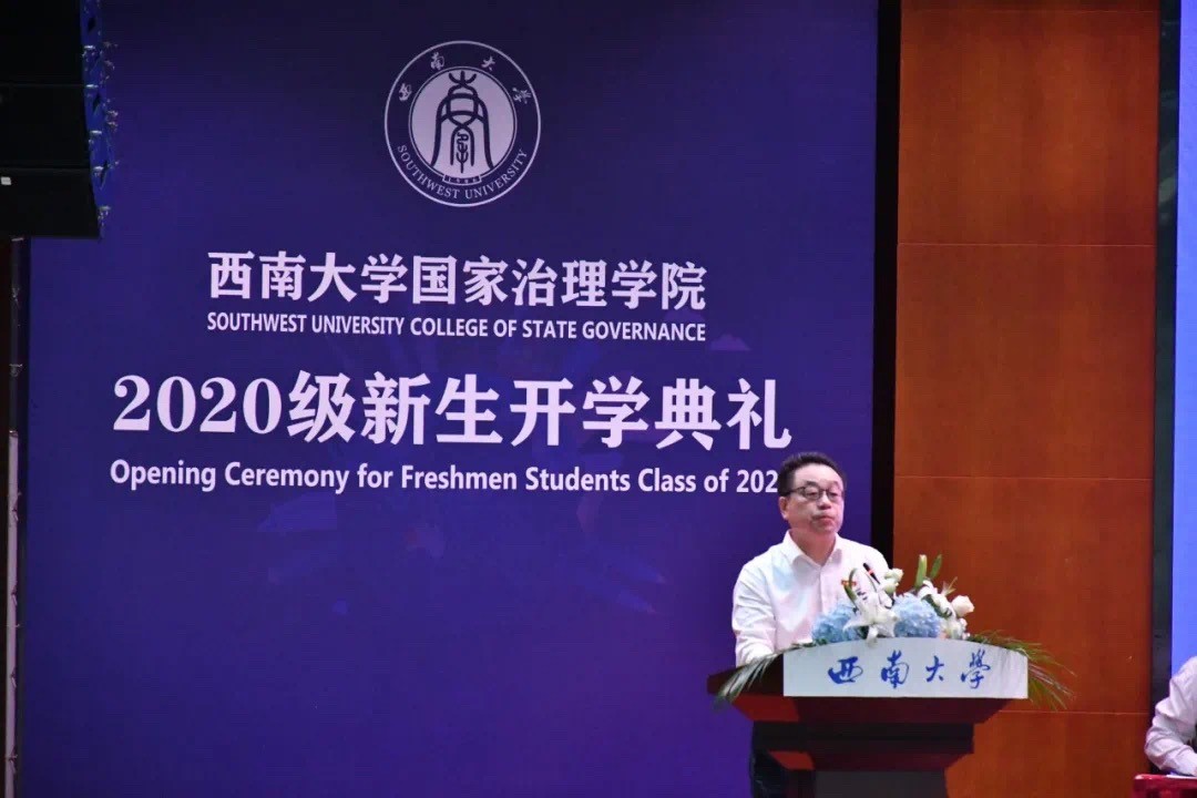 发布时间: 2020-10-01 15:08:36 已阅读:9月21日下午,国家治理学院2020级新生开学典礼在校学生活动中心107报告厅举行。校党委书记李旭锋、学院全体党政领导、博士生导师、各系主任、党支部书记、教师代表、全体辅导员、2020级班主任以及西南不级全体新生出席典礼。开学典礼由学院党委书记吴江教授主持。