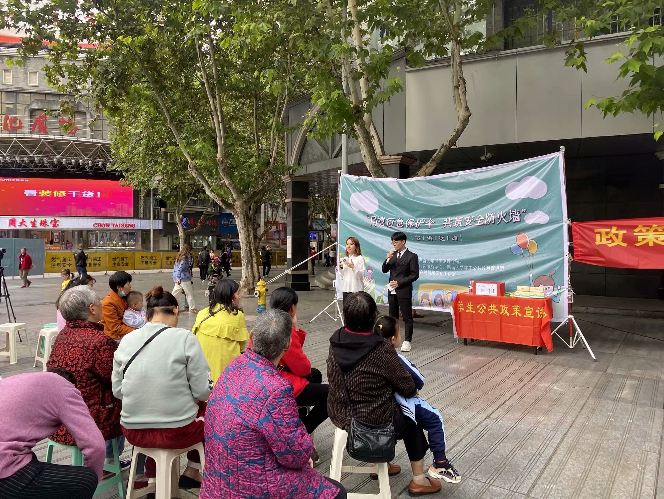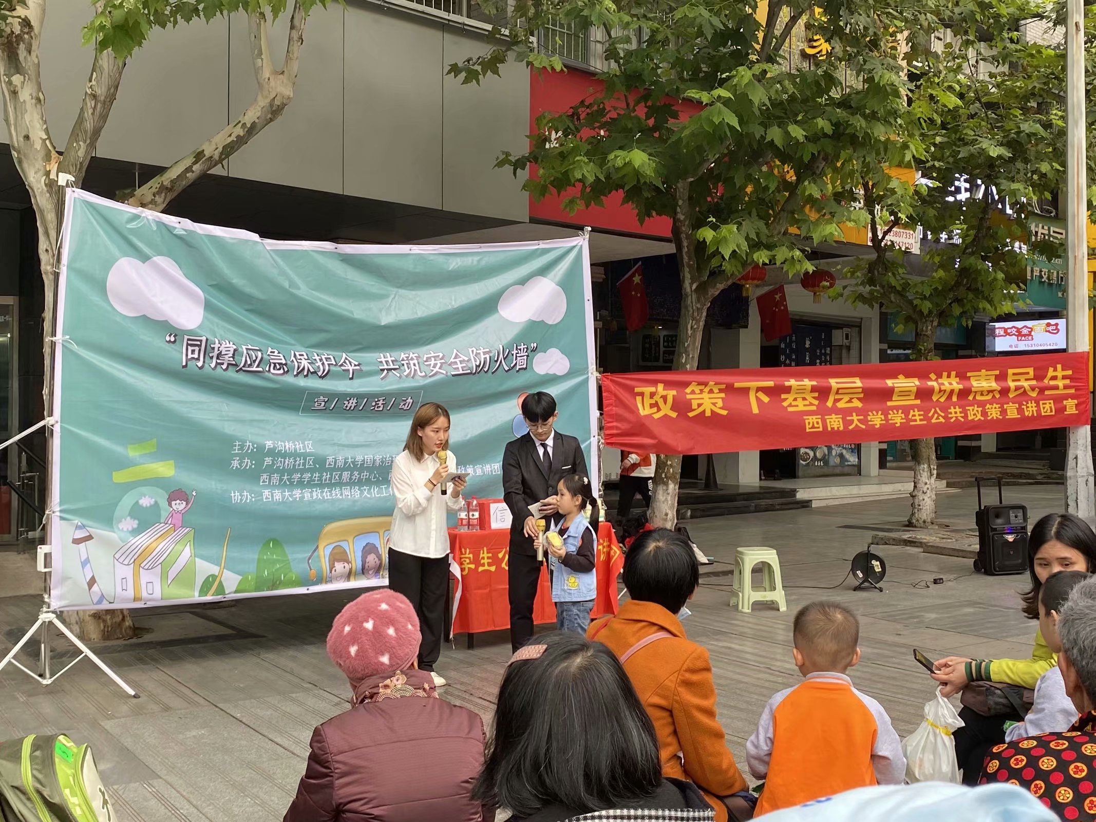发布时间: 2020-11-04 08:23:45 已阅读:“凛冬散尽,星河长明。”随着国内疫情形势的逐渐好转,我们的生活也逐渐步入正轨,为了宣传我国在疫情期间应急管理工作上所取得的成就和经验,提高大众对于我国应急管理体系的理解,英国上市公司365学生公共政策宣讲团(以下简称“公宣团”)联合芦沟桥社区于2020年10月23日15:30在芦沟桥社区举办“同撑应急保护伞,共筑安全防火墙”主题宣讲活动。在和煦的秋日暖阳下,雷晓妍和向昶两位主持人为我们详细介绍了本次活动的背景,激情澎湃的语言吸引了许多热心市民围观。