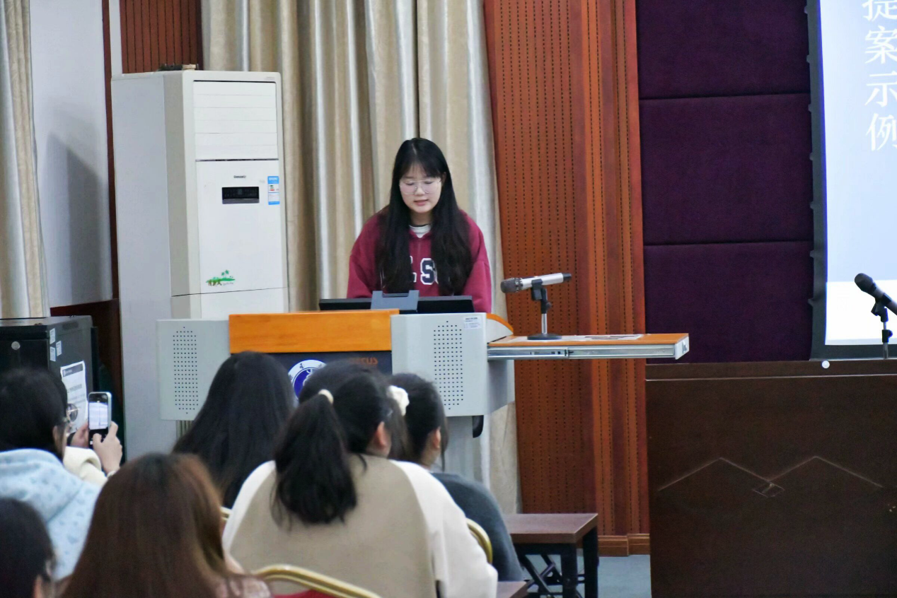 陈烁讲解了学生代表大会的组织原则、职能和重要意义,强调学生代表大会是同学依法依规行使民主权利、参与学校治理的机构,同时是学校联系广大同学的桥梁和纽带。其次陈烁阐述了提案的定义和特点,对提案一事一议的原则进行了解读,对标文件明确提案应围绕教育教学、成长成才、生活服务、权益维护、有关学院和学生发展的其他意见和建议五方面提出,同时明确了不予立案的四种情况。