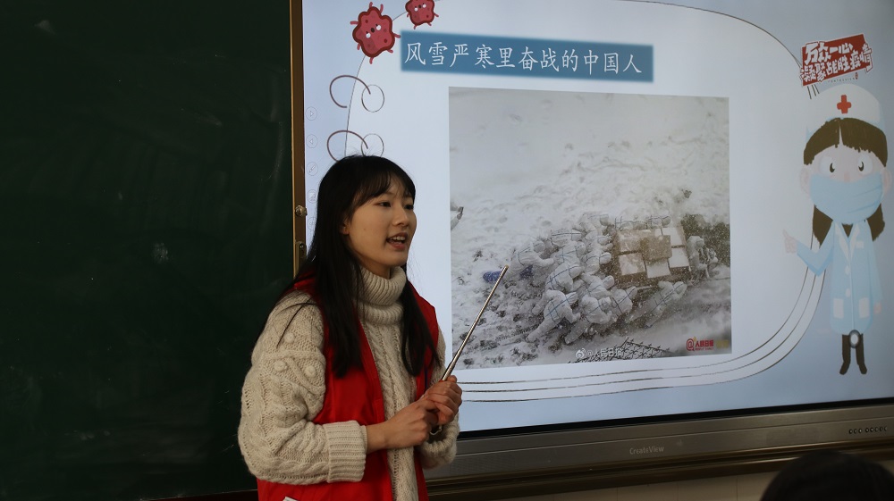 为了强化小朋友们的防疫意识,同时让爱国奉献的精神从小在他们心中生根发芽,志愿者们选择和小朋友们分享抗疫中的故事,带领他们一起去了解典型的抗疫英雄。84岁高龄,仍奔赴一线的钟南山;身患渐冻症,仍坚守岗位的张定宇;和时间赛跑,研制疫苗的陈薇,等等听到这一个个令人肃然起敬的故事,“他们是英雄,是救世主。”“他们是保护我们的天使。” 还有小朋友说:“我长大了也要和他们一样,做一个保护大家的医生!”立足当下,对于即将到来的寒假,疫情尚未结束,志愿者手把手教小朋友如何正确的佩戴口罩、如何正确的、干净彻底的清洁手部“左手搓右手,十指要交叉......。”小朋友们学得有模有样、十分认真。