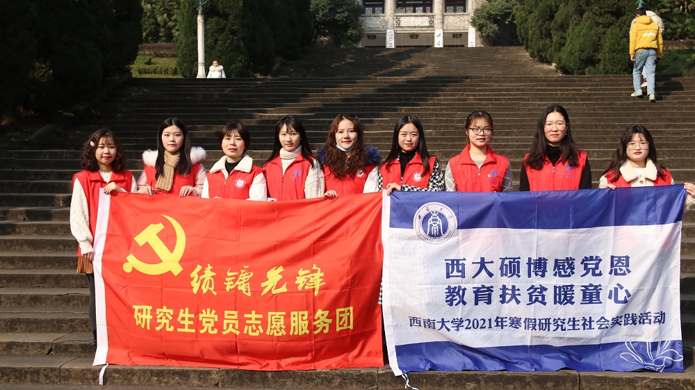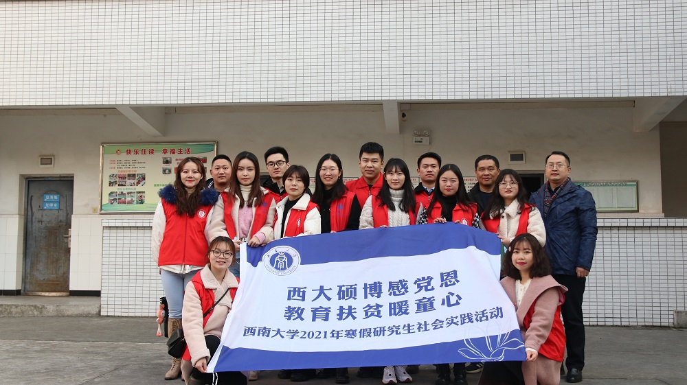 西大硕博感党恩,教育扶贫暖人心。为引导研究生立足国情,扎根大地,奉献社会,助人自助,传承百年初心,做好党的代言人,成为人民群众的好帮手,1月13日至17日学院“绩镛先锋”研究生党员志愿服务团组织社会工作、行政管理等专业的研究生,努力发挥专业优势,助力乡村教育振兴,前往北碚区东阳小学,化身园丁,执教杏坛,开展系列暖童心、筑童梦的志愿服务活动。
