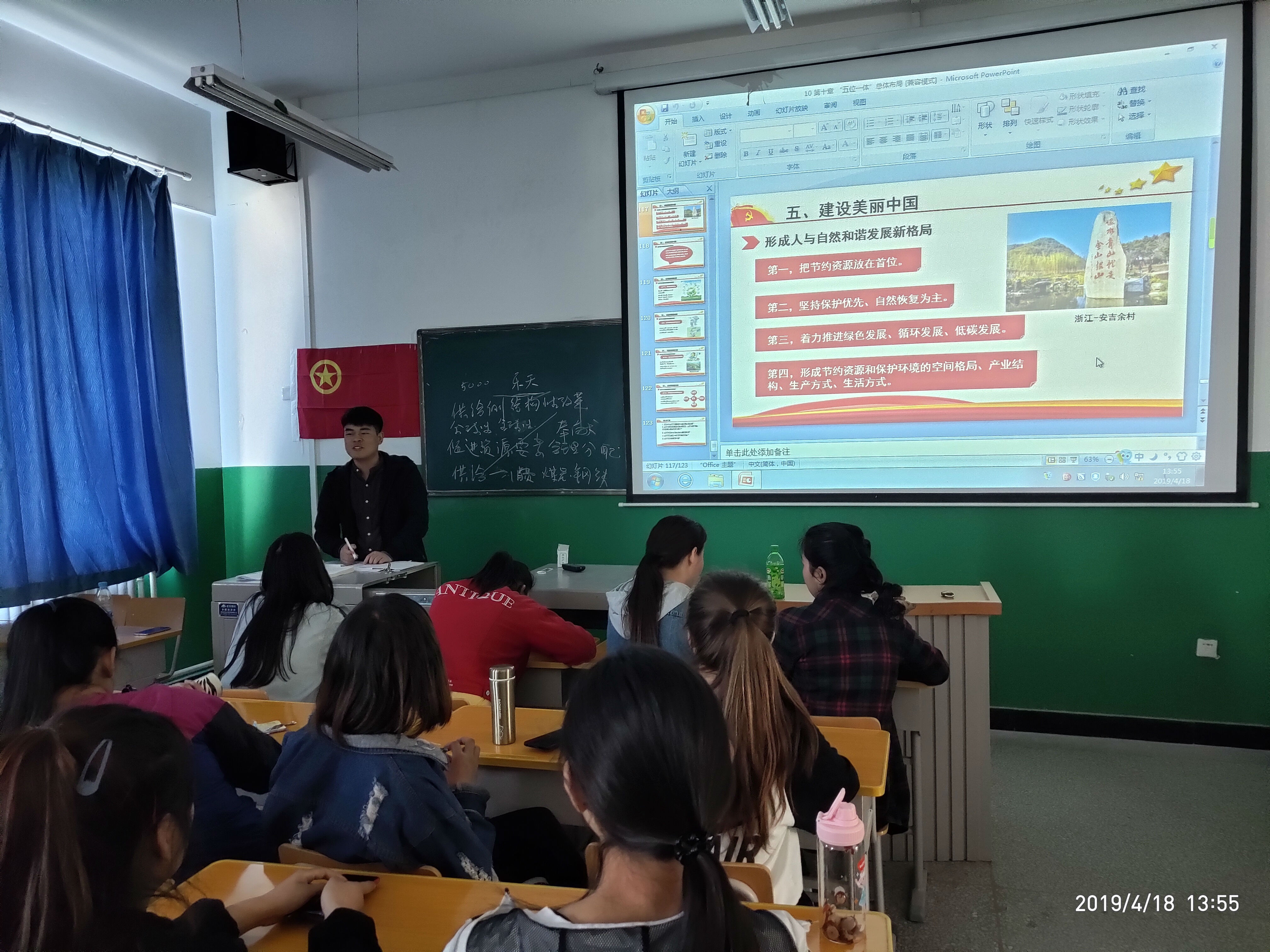 我这次任教的课程是政治经济与社会,从刚开始上课的紧张羞涩到如今的严肃活泼,从一开始老师与学生的不沟通、少沟通到现在的多交流,勤提问,课程上的学习与教学也渐入佳境。在教学与学习的过程,有一个班的情况让我印象深刻:这个班全班同学都来自南疆,国语水平普遍不高,基础知识也掌握得不牢固。一开始,只是我讲学生听,但是一提问时,班里的学生都不作声。下课和他们交流后才知道,原来他们对很多字词的意思、语句的含义都不甚了解。于是乎,在今后的教学过程中我也针对性的做了一些调整,对一些生词语句都做了通俗解释。虽然上课进度慢了,但是学生们每堂课的收获满满让我倍感欣慰。这个班的学生也经常关心我:老师,最近身体怎么样?万事如意吗?(这是学生发给我的原话)嗯嗯!老师想告诉你们:你们的成长就是我最大的“万事如意”!