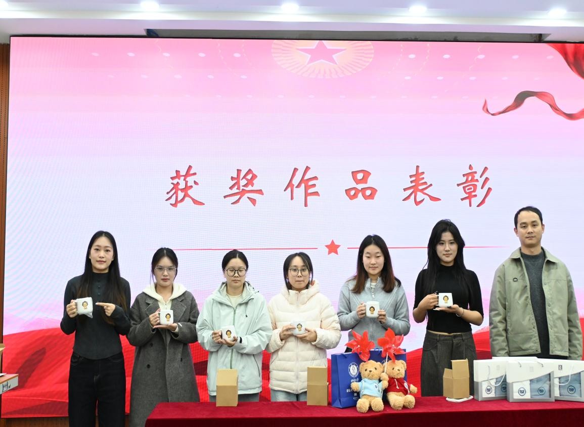 经过现场分享与公开评选,6组作品凭借独特创意与真挚情感脱颖而出。学院研究生辅导员郝汉老师为获奖选手颁发精美奖品并合影留念。当获奖者手持亲手绘制的专属挎包登台领奖时,现场掌声阵阵,这份荣誉既是对同学们创作功底的肯定,更是对作品中蕴含的历史敬意与传承决心的共鸣。