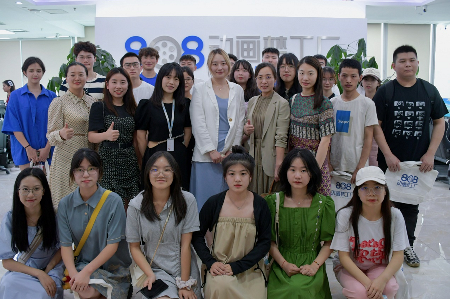 深化产教融合,对接企业人才培养需求,拓宽学生就业渠道,6月16日下午,学院党委副书记王晖学院辅导员曾琪芮、史丽、杨钦清老师带领20余名本科同学来到808动画梦工厂(重庆昭启网络科技有限公司)参观学习。