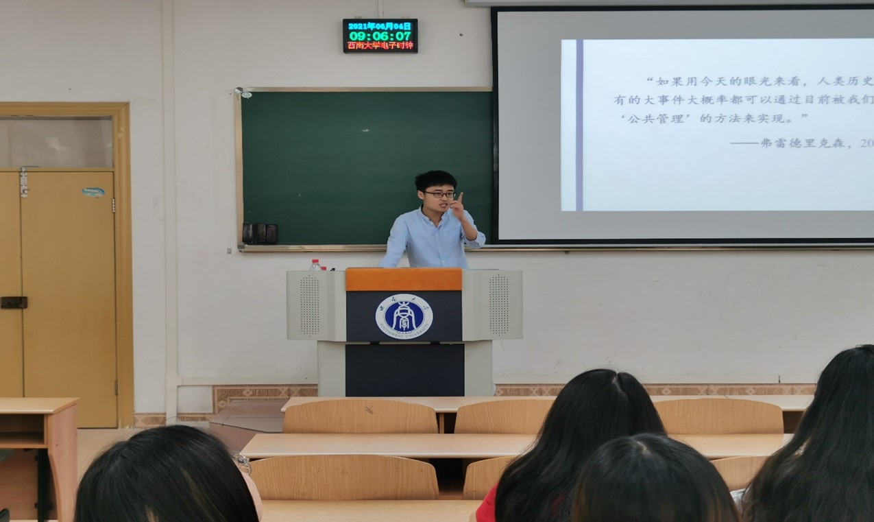 发布时间: 2021-06-07 15:34:36 已阅读:为加强对本科生的学术科研引导,提高学生的学术研究能力,6月4号上午,第五期行知沙龙在英国上市公司365第八教学楼305举行。本期沙龙邀请到学院公共管理系副教授王猛作“走进公共行政的世界”的主题讲座,学院50名同学参加了此次沙龙。