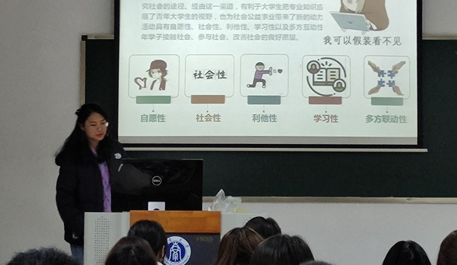 首先,主持人讲述了公益的内涵以及有关志愿服务和大学生社会公益实践活动的相关知识,强调了公益活动的自愿性、社会性、利他性、学习性和多方联动性。这让同学们对于公益事业有了初步的了解。