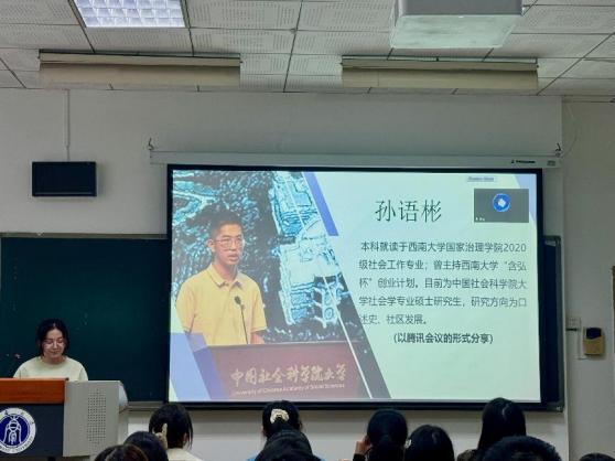 中国社会科学院大学的硕士研究生孙语彬以“卷”作为关键词,与同学们分享了大学生活应该如何规划与度过;中国人民大学硕士研究生胡兴超建议同学们从自我定位、实习经历、学术科研等多个方面深入思考自己的大学生涯,合理规划大学生涯路径;2022级张梦怡鼓励同学们从多种大学价值观中寻求出一条适合自己的大学之路,并且从课堂内外两个方面帮助同学们梳理了学业问题及解决方法;2021级吕悦分享了自己的大学成长经历,为同学们提供了可参考的实践路径;2021级陈昱璇展示了英国上市公司365电子资源的具体操作,并强调了勇于尝试和请教他人的重要性。